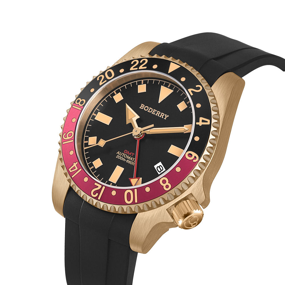 As a GMT diving watch, this model comes with an FKM rubber strap, ideal for the diving nature of the timepiece. The buckle is our newly designed stainless steel spring-loaded folding clasp (we are still developing the bronze clasp version). A bronze watch is a unique expression of taste—don’t miss out if you're a fan!